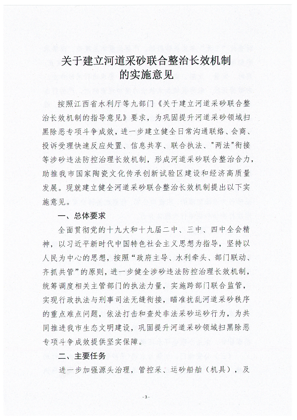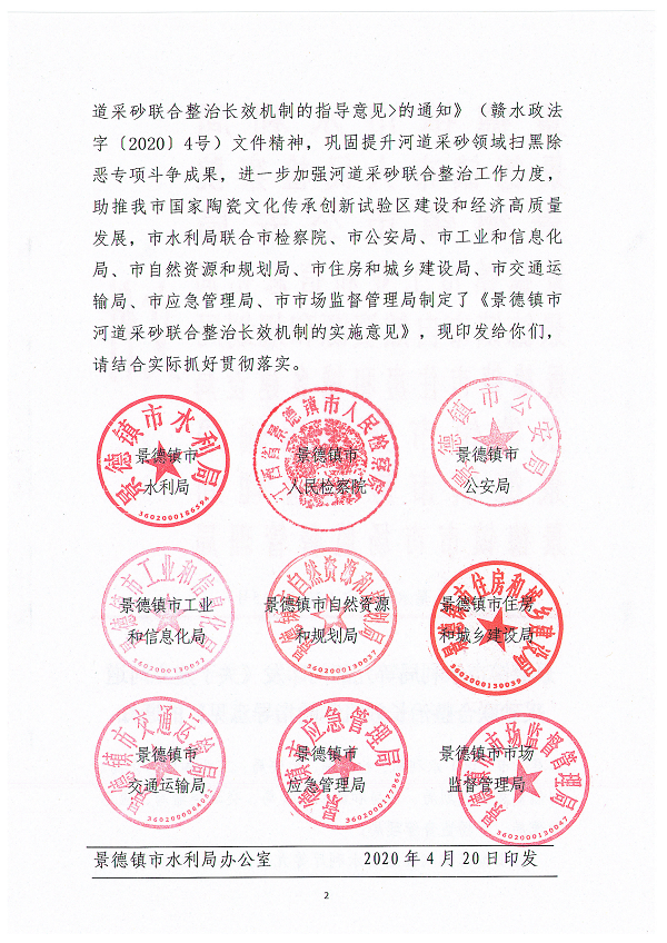 景德镇市水利局等九部门印发《关于建立河道采砂联合整治长效机制的指导意见》的通知(景水建管字〔2020〕15号)
