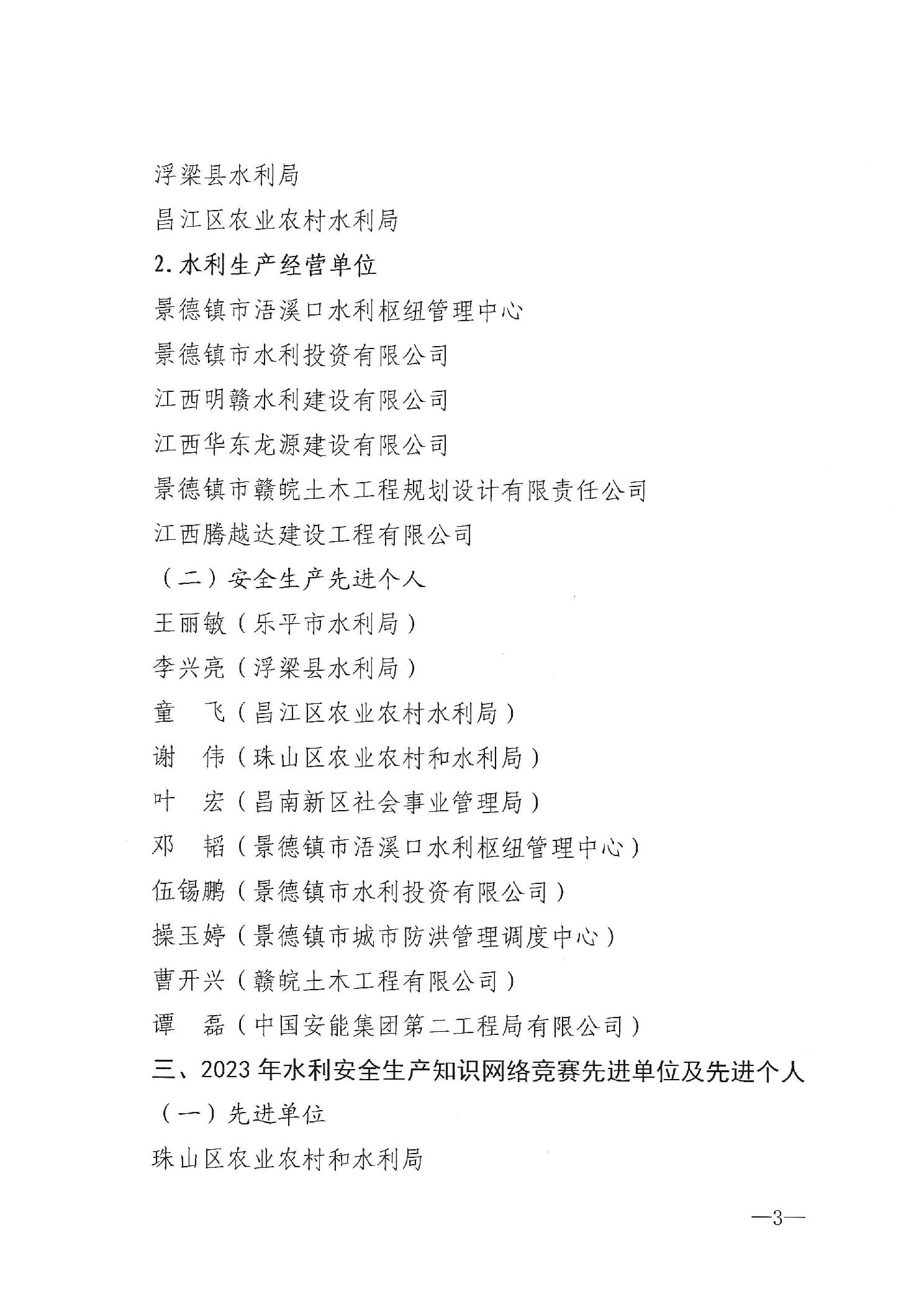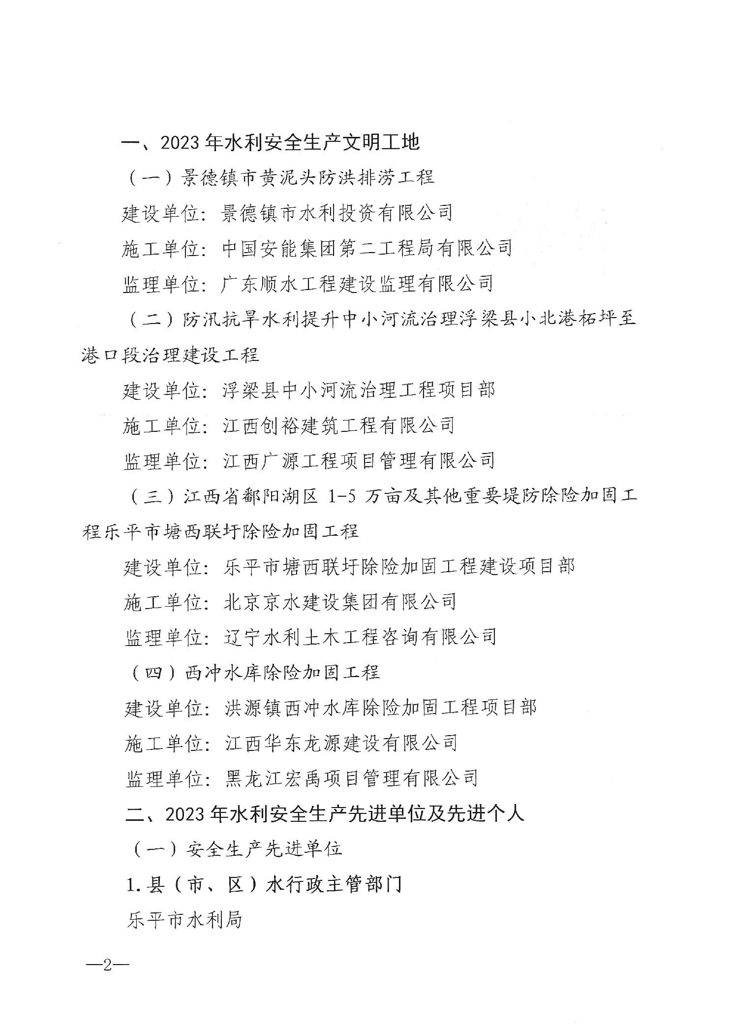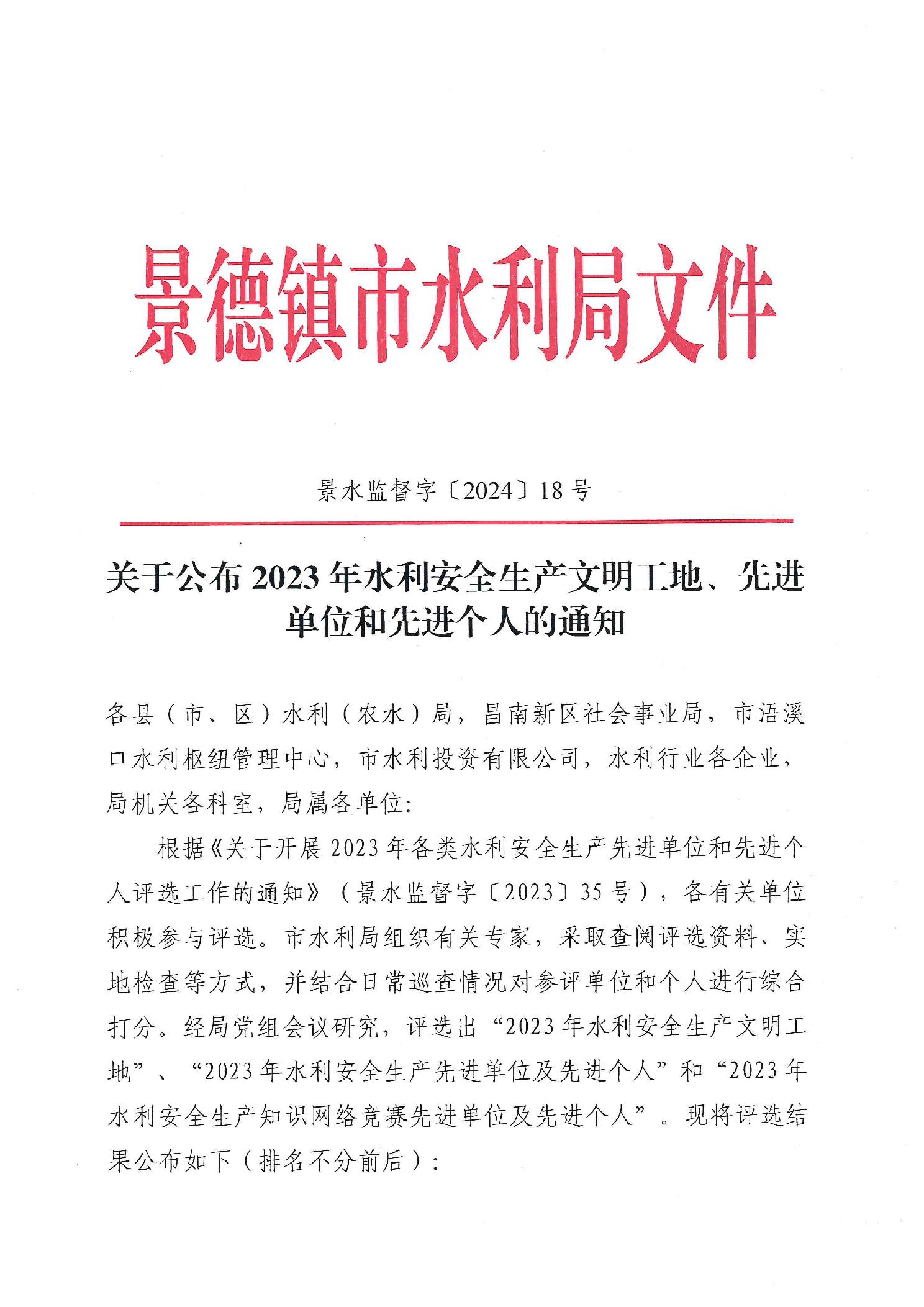 关于公布2023年水利安全生产文明工地、先进单位和先进个人的通知