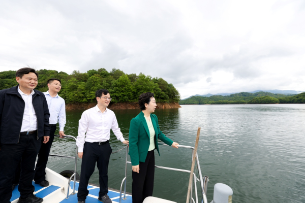 在共产主义水库,胡雪梅察看了河长制公示牌,并乘舟巡库,实地了解饮用水源地保护、流域生态补偿、水库周边建设等情况。她强调,要深入贯彻落实习近平生态文明思想,深入践行“两山”发展理念,科学合理进行水源地选址,做好饮用地水源安全与水利资源开发利用结合文章,在守护一湖清水的同时通过发展惠泽一方百姓。