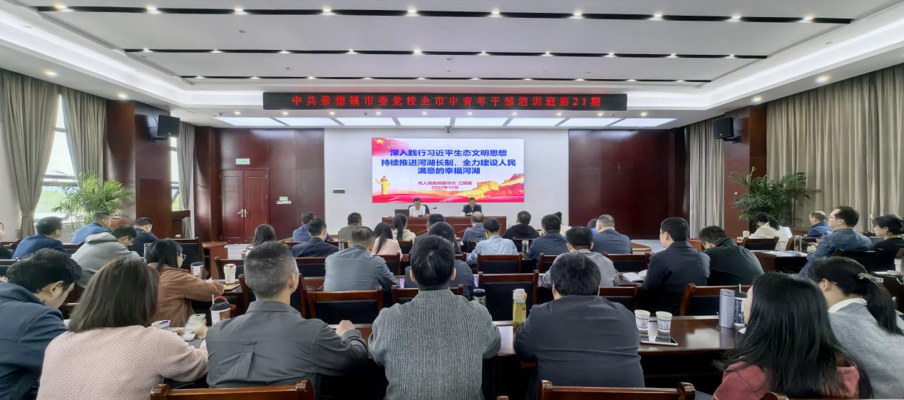 江民强以“深入践行习近平生态文明思想持续推进河湖长制,全力建设人民满意的幸福河湖”为题,从“实施河湖长制的背景、河湖长制工作的探索与实践、如何强化河湖长制,建设幸福河湖”3个方面围绕河湖长制工作总体情况及河湖长制工作基础、工作实践、工作成效、典型案例等方面进行了深入浅出、生动有趣的讲解。通过培训,学员们纷纷表示,通过学习,对河湖长制、河湖保护治理工作有了更加深入的认识,在今后的工作中将学以致用,切实保护好、建设好、利用好景德镇的绿水青山,为全力建好景德镇国家陶瓷文化传承创新试验区,把“千年瓷都”这张靓丽的名片擦得更亮贡献力量。