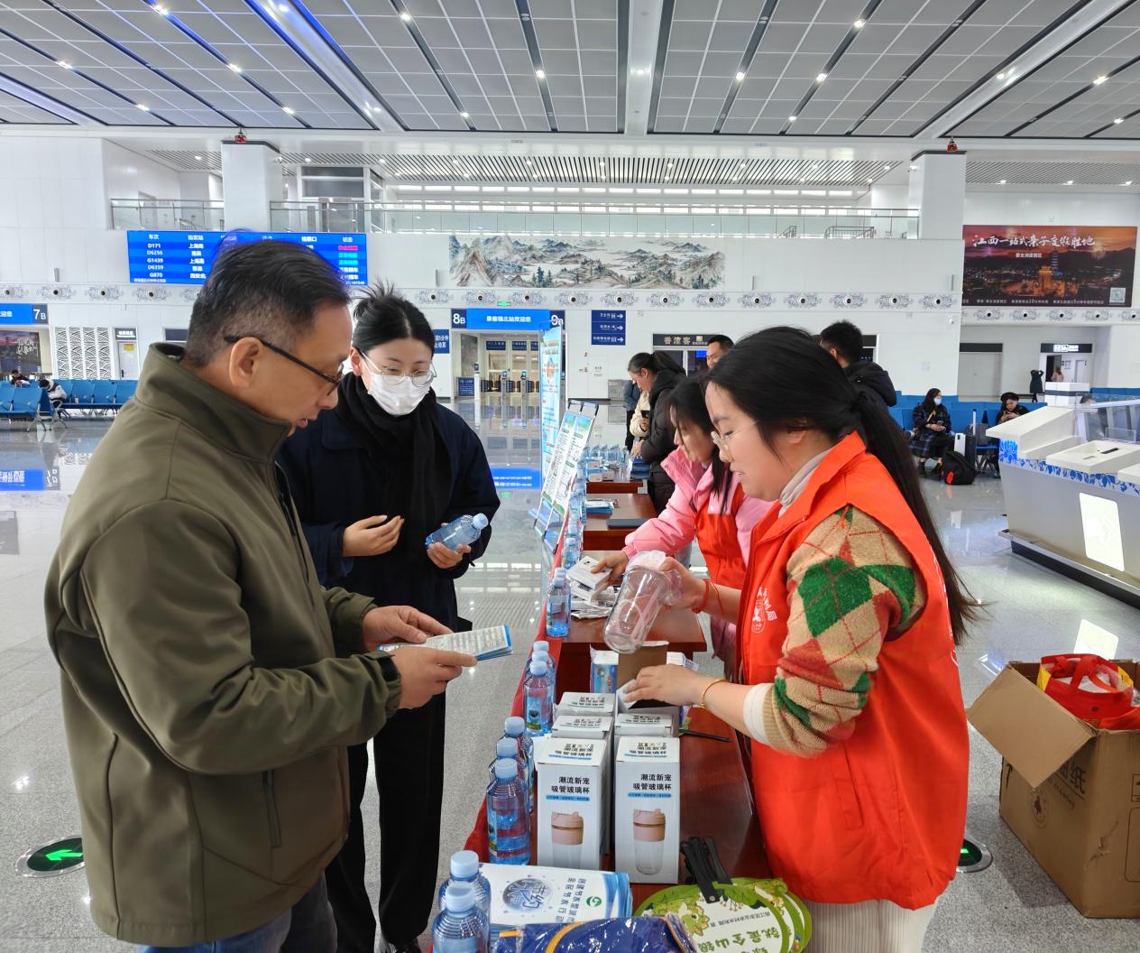 景德镇北站作为市重要交通枢纽,春运期间日均客流量超2.5万人次。水利局抓住这一特点,向客发放家庭节水指南,并详细介绍瓷都水资源保护成效,展现城市绿色发展形象。本次活动的主题为“坚持贯彻落实节水优先方针 建立健全节水制度政策体系”,发放宣传资料1000余份,覆盖旅客超3000人次。