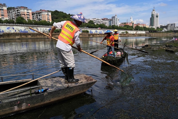 清理河面水草