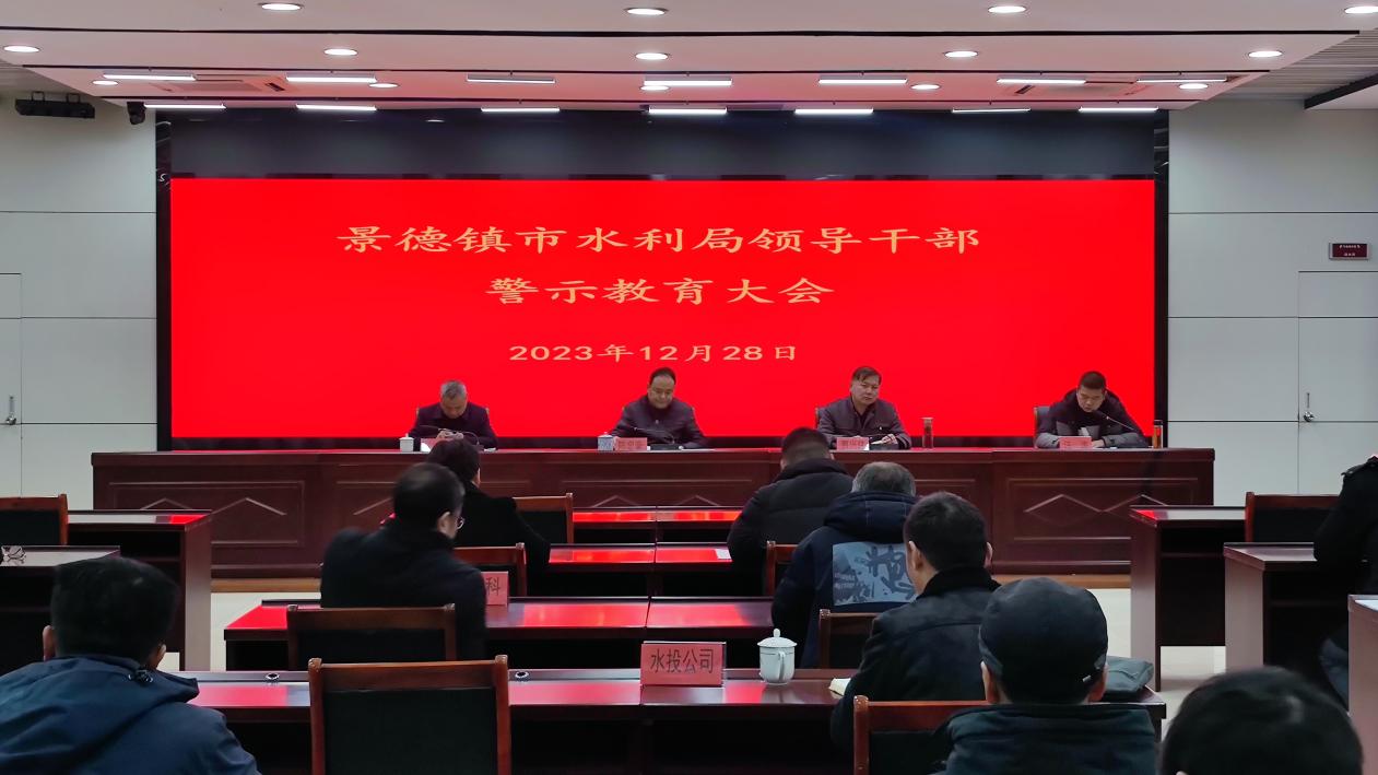 为深入学习贯彻党的二十大精神和习近平总书记考察江西重要讲话精神,全面学习领会习近平总书记关于全面从严治党的重要论述,进一步落实全市领导干部教育警示大会精神,12月28日,市水利局召开领导干部教育警示大会。局党组书记、局长陈忠豪出席会议并讲话,他强调,要结合相关典型案件,教育引导全局各级党员干部尤其是领导干部以案为鉴、以案示警、以案促改、以案促治,以实际行动推进全面从严治党向纵深发展,以新气象新作为把“千年瓷都”这张靓丽的名片擦得更亮。局党组成员、副局长汪涛主持会议,局领导班子成员、局机关全体公务员和工勤人员、局属事业单位副科级以上领导干部、市水利投资有限公司和市水利规划设计院管理层人员参加会议。