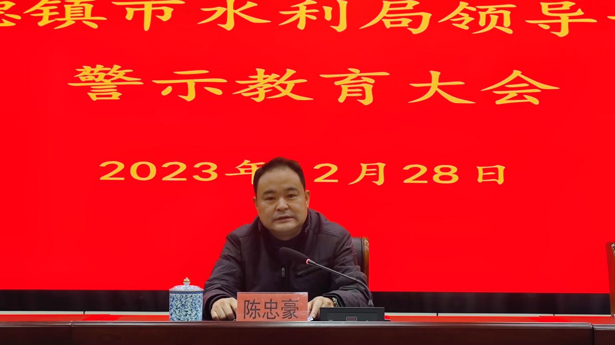 陈忠豪要求,水利系统各级党员干部特别是领导干部要深入学习贯彻党的二十大精神和习近平总书记考察江西重要讲话精神,全面贯彻习近平总书记关于全面从严治党的重要论述,严以律己,洁身自好,努力做一个勤政廉政、廉洁自律的好干部,切实履行好党和人民赋予的神圣职责;要坚持以案为鉴、以案示警,以案促改、以案促治,以实际行动推进全面从严治党向纵深发展,推动瓷都水利高质量发展,以新气象新作为把“千年瓷都”这张靓丽的名片擦得更亮。